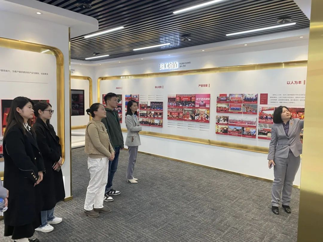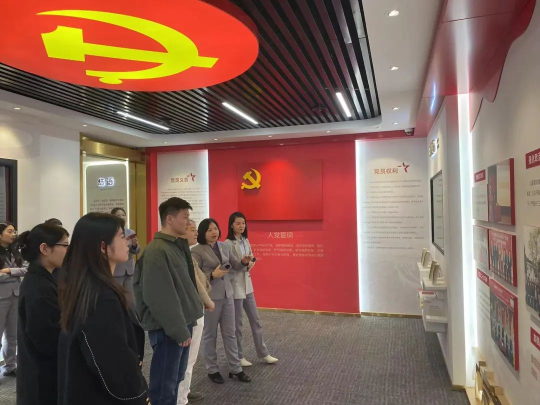 活动伊始,刘春萌介绍了汇合天津分公司党支部基本情况以及展开的特色党日活动。陈素雯介绍了招商银行及天津分行发展历程、工作环境、员工培养体系等;随后,带领参观党建文化长廊。王婷婷针对我院毕业生专业分布、求职意向、生源等情况进行介绍。张栋表示希望可以以此为契机,邀请银行优秀员工进校,为大学生讲解金融知识、防范电诈、消费者权益保护等知识,进一步深化校企合作。