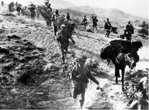 图为孟良崮战役中,我军向孟良崮进军