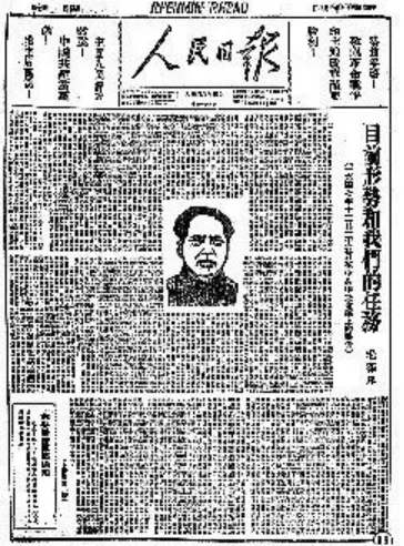 这是1948年1月1日晋冀鲁豫解放区出版的《人民日报》上刊登的《目前形势和我们的任务》