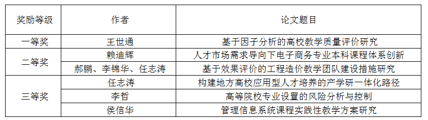 2013年3月到5月我院开展了第四届教育教学改革有奖征文活动,并于5月11日到5月30日组织了专家评审,最后6月1日在行健楼C306举行了优秀论文颁奖仪式。论文评审采用匿名评审,最后共有6篇论文分获一、二、三等奖。