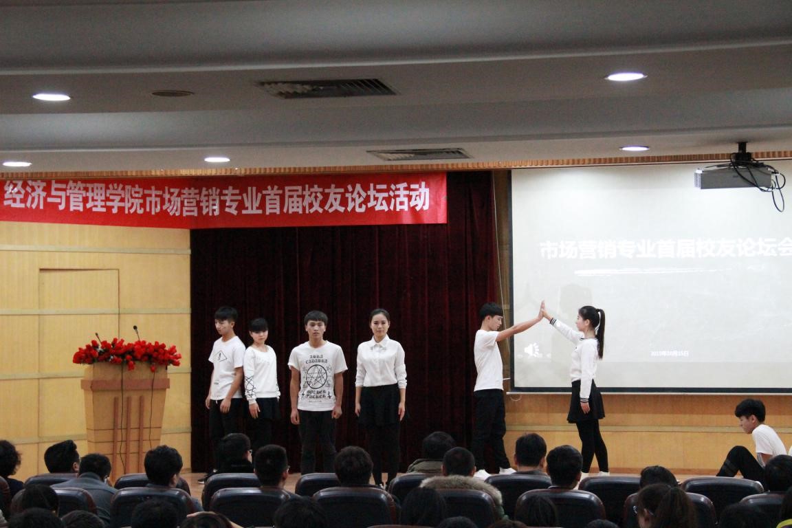 首先由院党委书记郭伟老师致开幕词,对返校的校友们表示了亲切的欢迎,并介绍了营销专业自2003年以来的发展概况,亲切地鼓励广大校友对学院学科建设发展献言献策;随后,校友代表们分别结合自己的成长经历做主题演讲,现任天河城购物中心招商有限公司主管的2005级校友王长城发表了题为《房地产营销专业的求职方向探讨》的演讲,为大家详尽介绍了营销方向的市场信息;担任和利时北京区销售总监的2004级校友于凤涛在《七年营销工作感悟》中分享了自己工作多年的销售经验;担任天津科杰教育信息咨询有限公司市场总监的2010级校友胡珂的《创业给我上了一课》,结合自己起起伏伏的创业经历鼓励大家坚持梦想;此外,2003级校友魏友浩的《认真学习,努力工作》、2006级校友詹家成的《先改变自己,先生存下来》、2010级校友范洋洋的《优秀的你,在哪里》、2011级校友余林明的《互联网+餐饮后段采购的创业分享》,纷纷将自己多年的从业经验及感悟与在座学生分享交流,鼓励学弟学妹们在学期间努力夯实基础,提高个人实践能力,实现成长成才。论坛间歇,市场营销专业的同学还带来了各种精彩的节目,激情的演讲、动感的舞姿,向在场的嘉宾们展现了营销学子的风采。