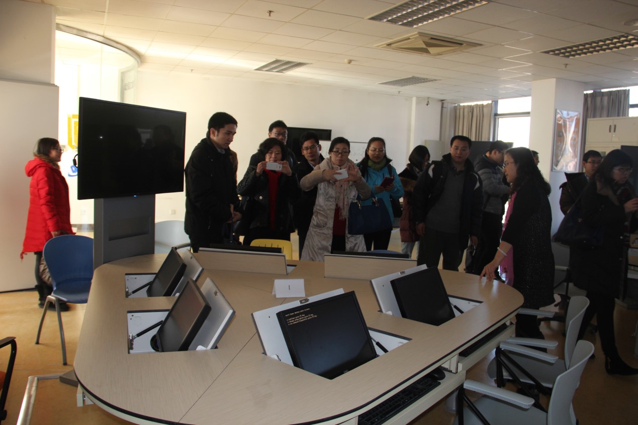 2015年12月15日,受新道科技股份有限公司的邀请,天津师范大学、天津工业大学、天津外国语大学、天津科技大学、天津城建大学、天津财经大学珠江学院等六所高校的经管类学院20位教师,赴北京工商大学良乡校区,参观文科实践中心。我院郭伟、王磊和李健三位老师,参加了此次考察活动。北京工商大学文科实践中心是文科类国家级实验教学示范中心和国家级虚拟仿真实验教学中心。中心主任郭馨梅教授详细介绍了北京工商大学文科实践教学体系和课程体系,引导老师们参观了智慧教室、模拟法庭、多功能沙盘区、跨专业实训区,参观后对文科类实践教学体系的建立、创新创业与实践教学的结合等问题展开了深入的交流。此次活动对我院系统搭建实践教学平台,推进实验室建设具有重要意义。