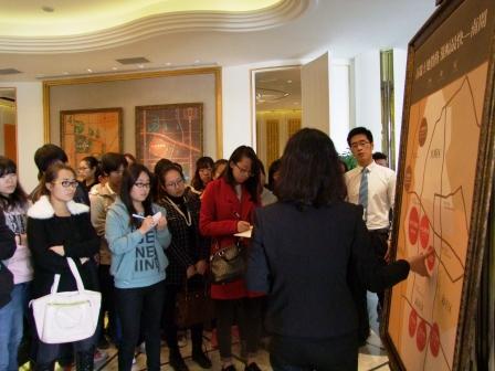 随后,怀揣着对房地产销售知识的渴求,同学们又抵达天津市南开区王府壹号售楼中心。销售经理耐心细致为同学们讲解了天津市各个楼盘的现状,对各个正在销售中的楼盘进行了分析比对,还为同学们介绍了王府壹号楼盘的优势。同学们认真学习并记录了讲述的内容,宏观的了解了天津市的房产现状。