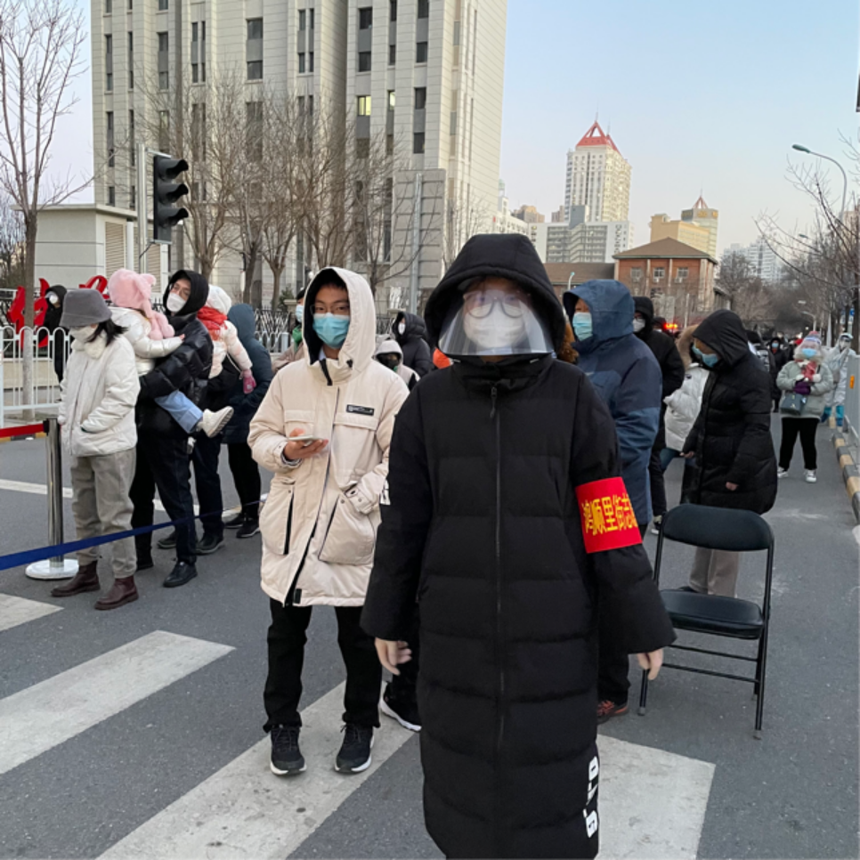 2022年的开端,天津被突如其来的“奥密克戎”病毒所笼罩。疫情之下人人有责,2019级投资学2班的王玥涵主动为抗击疫情出力,报名成为了一名社区疫情防控志愿者。她所属鸿顺里街道律纬路核酸筛查点。她和社区其他的志愿者负责清点核酸检测的人数,维持秩序,给群众讲解注意事项等,在大家的共同努力下整个队伍变得井然有序。王玥涵说:“天气虽冷,但我的心里十分温暖。作为新时代的青年,我也要积极承担起民族复兴的重担,用行动践行新时代青年大学生的责任和使命!”
