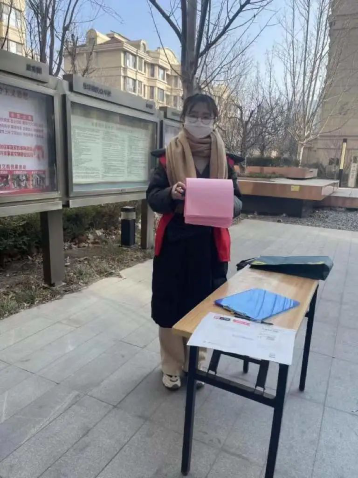 1月15日齐珊娜老师作为志愿者参加天津市第三次核酸筛查。15日早晨6点准时到碧岭园小区前广场待命,帮助物业搭建帐篷、摆放桌椅、准备材料,陪同卫健委检查员检查现场状况。由于小区住户较少,且高龄者占比较大,很多住户没有早起看手机,导致7-8点只有零星少数居民前来进行核酸检测。为了让医务工作者能够尽快完成任务前往下一个检测点,齐老师同其他志愿者分工协作,开展“敲门行动”,逐一通知到位,确保不落一人。在大家的努力下,9点小区全部住户完成核酸检测,还为附近人口较多的小区分流了一定的检测数量。齐老师说,“今天是我首次作为志愿者参与核酸筛查工作,从受惠者转变为付出者,才真切地体会到社区工作者的辛苦、下沉干部的尽职尽责。在今后的疫情防控工作中我会继续遵从社区安排,服务群众,贡献力量。”