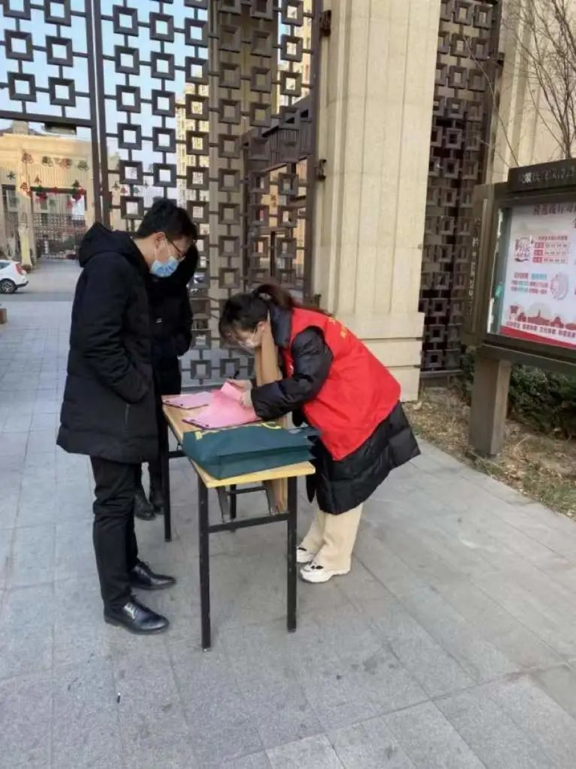 王紫琦老师主动报名参加了云龙里社区疫情防控志愿服务,参与居民参检情况信息录入、第三轮核酸检测小区居民信息登记工作。1月15日早上6点多,天还没亮,王老师准时达到工作点位,立刻投入到紧张的工作中。在小区门口,对着信息表核对每一位参检居民的信息,并协助工作人员发放检测凭证。信息核对既要快速高效,减少居民排队时间,保证居民能够尽快到达检测点位进行检测;又要细致准确,保证社区在后期可以清楚的排查到是否有漏检居民,并及时更新居民个人信息。近6个小时的工作,手指都冻红了。王老师说,“今天是我工作三年多来,第一次如此‘素颜’的出现在公众场合,但是我觉得今天的我比任何时候都好看,因为我成为了一名志愿者,我为疫情防控、为守护津城贡献了自己的力量,我感到很自豪。”