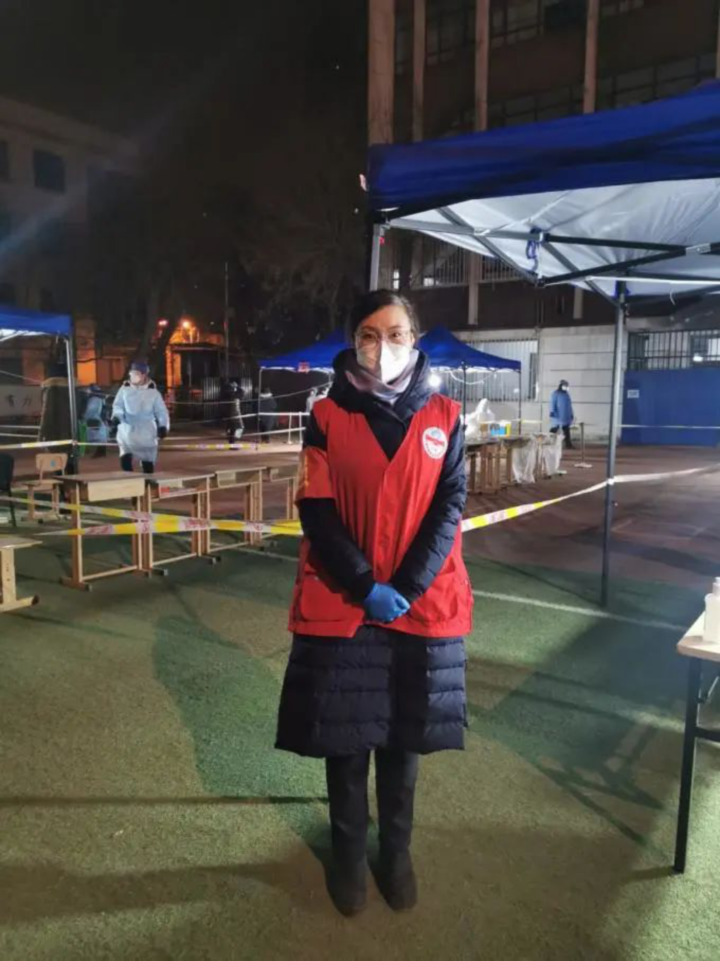 熊春连老师于1月15日参加南开区水上温泉花园第三轮核酸检测点第三组的志愿活动,负责引导参检人员进入指定通道检测。熊老师表示,这次志愿活动让她感受到社区核酸检测工作组织井然有序、工作效率高,志愿者们无惧寒冷、热情服务,居民们积极参加检测,主动配合检测工作。相信在大家的共同努力下,一定可以战胜疫情!