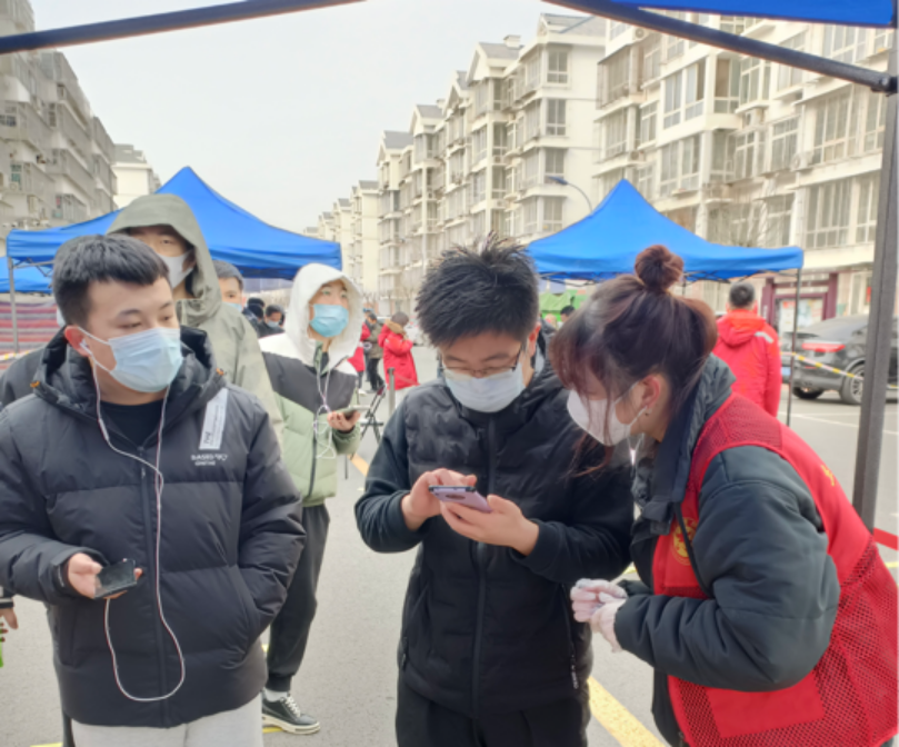2019级工程管理2班的李佳钧在天津疫情发生之时,第一时间主动请求作为宝坻区大唐庄镇北里庄村志愿者服务队的一员加入此次核酸检测中。在此次行动中,主要负责人员秩序的维护,检查健康码并帮助村民进行核酸检测的提前登记,加快核酸检测流程,减少人员的长时间聚集。他表示,“我们作为新时代的大学生,不能养尊处优,应肩负起时代赋予的责任。疫情之下,我看到了国家和天津市政府完善的应对措施和迅速的行动,许多党员们身先士卒,积极参与此次疫情工作。作为一名入党积极分子,我应积极向党组织靠拢,将‘全心全意为人民服务’作为自己行动的标杆。”