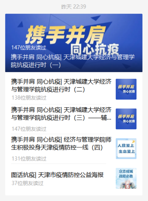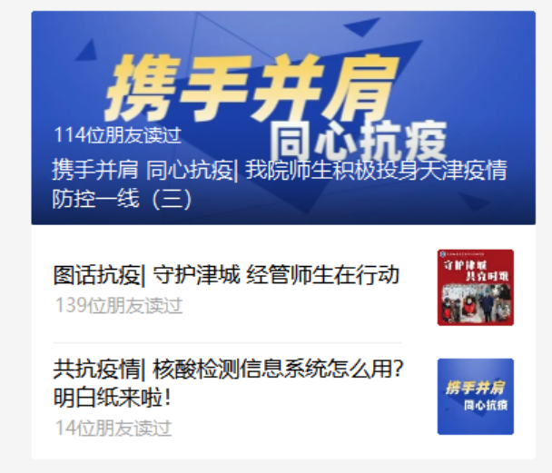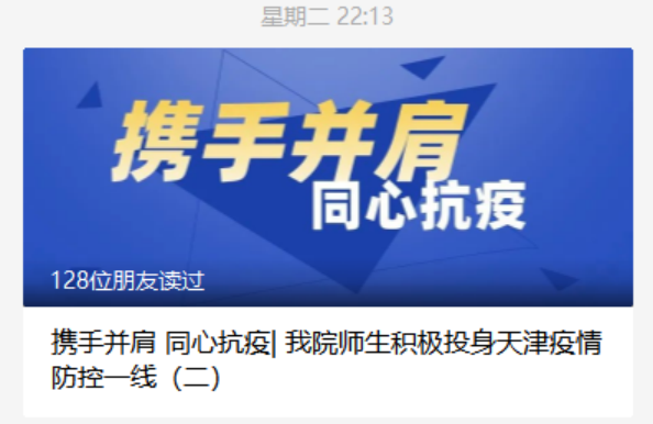 每个清晨,老师们在手机上看到的第一条信息总是学院发送的“防疫日报”;每有疫情的最新变化,老师们总能在第一时间看到刘春霞书记发送的天津市最新通告;每到晚上,学院领导干部都会工作到深夜,总结一天的疫情防控工作,做好转天的抗疫工作准备。全院教职工每天都能做到及时填写报表、准确报送个人防疫信息、全面接受学院管理、认真做好自身防疫工作和志愿者服务工作。
