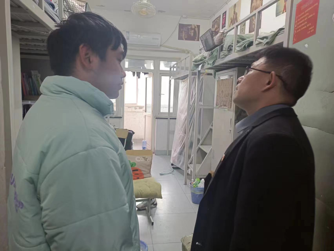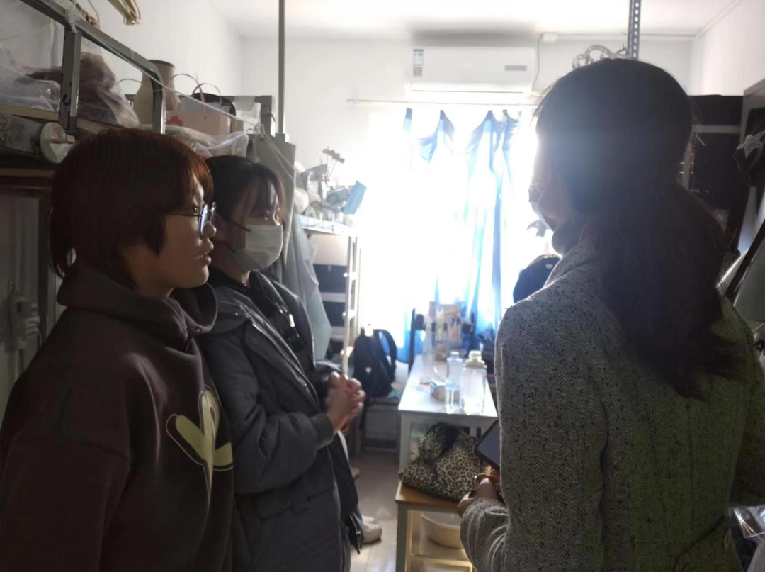 在走访宿舍过程中,老师们询问学生返校情况,全面了解了同学们的假期生活与新学期课程学习安排情况;对宿舍安全进行全面检查,重点检查了用电、用水的安全以及卫生情况;认真核查宿舍人员变化情况;围绕返校情况、学习、生活状态等问题与同学们进行了深入交流,细致回答学生问题;要求宿舍成员要友爱互助,强调要重视安全、卫生,树立优良寝风;新学期到来,要尽快适应线下上课形式,努力提高自我管理能力,养成良好的学习、生活习惯;嘱咐学生现在是春季流感爆发高峰期,应做好防护,宿舍保持通风,鼓励学生增强体育锻炼,提高身体素质。