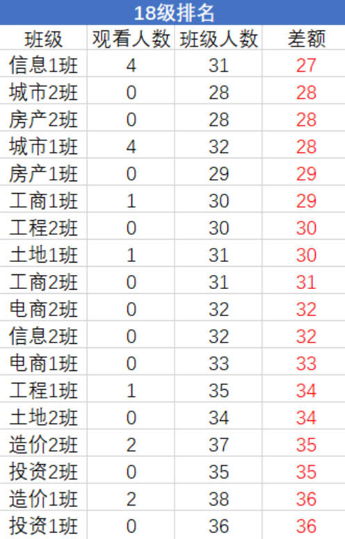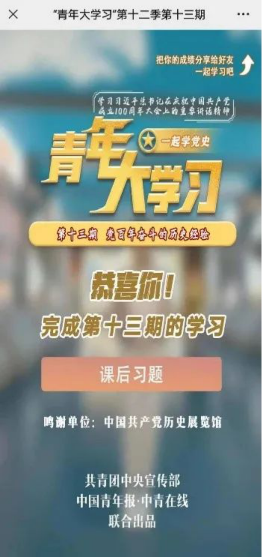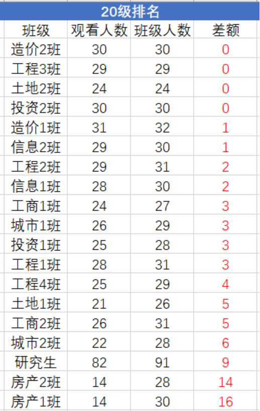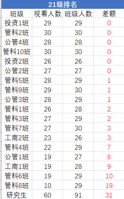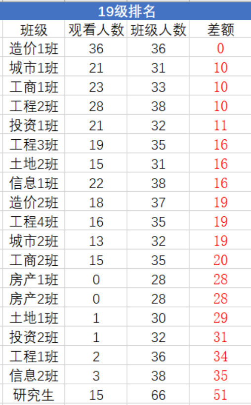 上期青年大学习统计排名如下