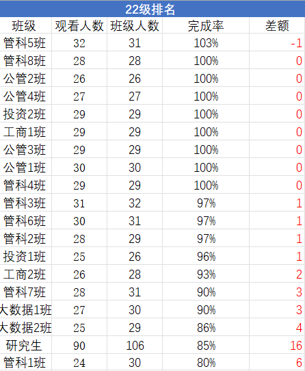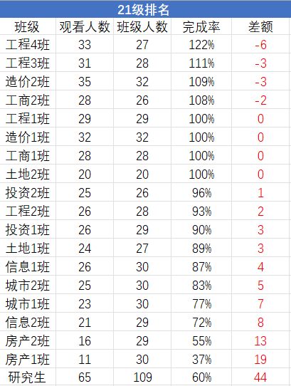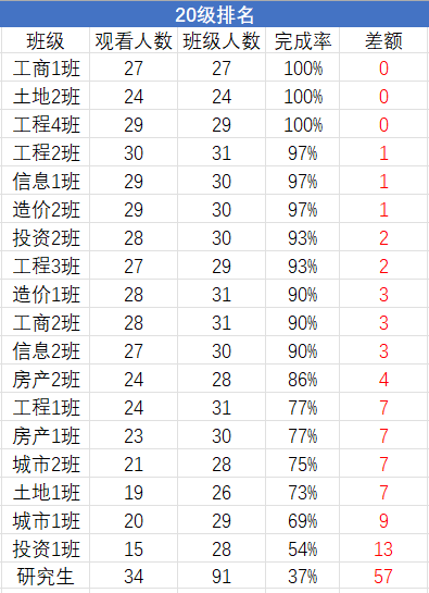 上期青年大学习统计排名如下