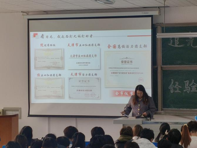本次宣讲活动邀请王克昌奖学金获得者杨博雅、天津市优秀学生获得者马海芳、天津市优秀学生干部获得者胡伯雨三名同学分享在校园的生活、学习、实践等方面的成长感悟,展现天城大学子风采。