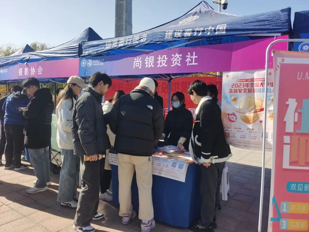 社团日常活动丰富多彩,包括纳新破冰、例会、竞赛培训和讲座等。2022—2023学年,共计开展13次例会,挖掘财经新闻、讲解金融知识;面向投资学专业各年级同学开展相关培训及讲座7次,邀请行业专家开展讲座4次,为同学们今后参加比赛、取得优秀成绩打下良好基础。社团积极参与各类校级、院级社团活动。2023年11月,参加校级活动“社团文化节——百团大战”,向全校同学宣传学科竞赛,展示社团风采。